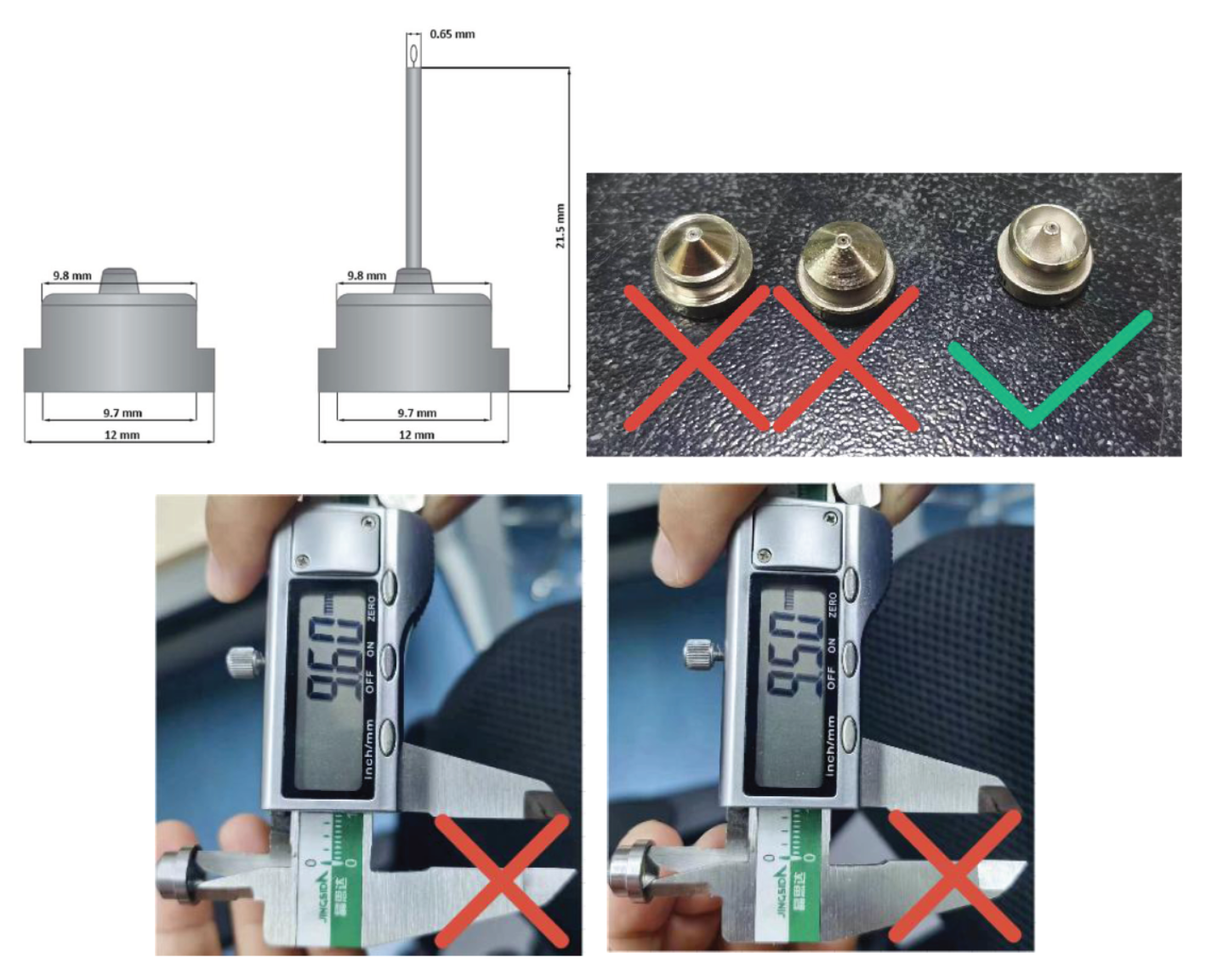 推荐使用SPINE 底座捞取样品,SPINE 底座规格如下图所示,请注意底座下部开口内径为9.7mm。过大或过小的开口内径都会引起严重问题,使用前请注意鉴别。推荐Pin 长度为18mm,即从底座最下方到尼龙环约22mm,以方便对中提高实验效率。