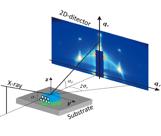 X射线散射基本原理是当X射线照射到样品上时,如果样品内部存在纳米尺度的电子密度不均匀区,则会在入射光束周围的一定角度范围内出现X射线散射信号。不同尺度的微观结构可以形成不同角度的散射,包括小角X射线散射(SAXS, >1 nm)、广角X射线散射(WAXS,<1 nm)。X 射线散射是研究材料纳米尺度结构的重要实验手段,高分子结晶、嵌段共聚物的微相分离、纳米填料、纤维微孔等微观结构尺寸都处于该范围内。