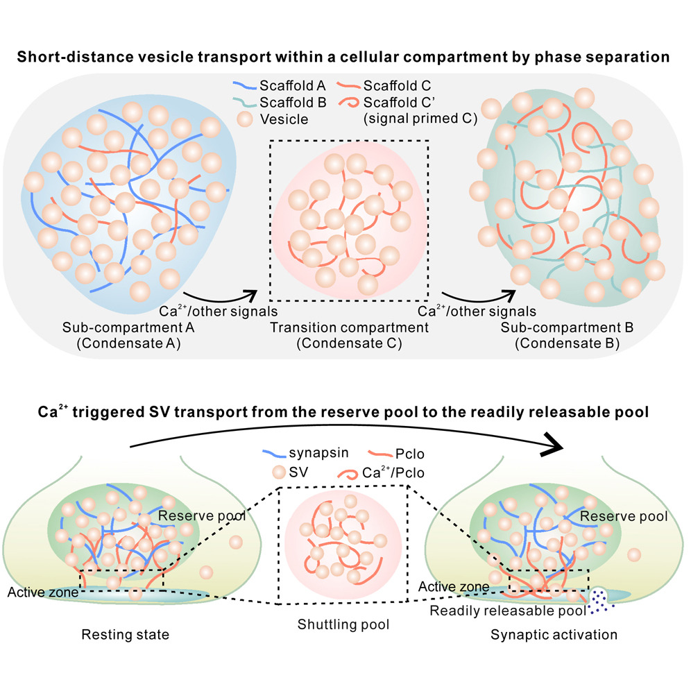 揭示了一种新型的由相分离介导的囊泡运输方式,该方式既摆脱了传统远程运输对马达蛋白与细胞骨架的依赖,又解决了被动扩散无法提供方向性的问题。