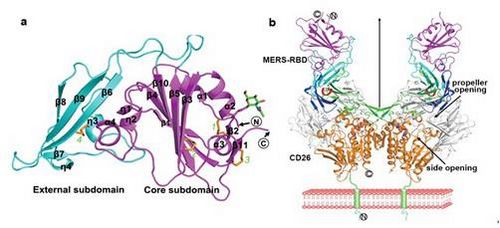 图为MERS-RBD以及RBD/CD26复合物的晶体结构