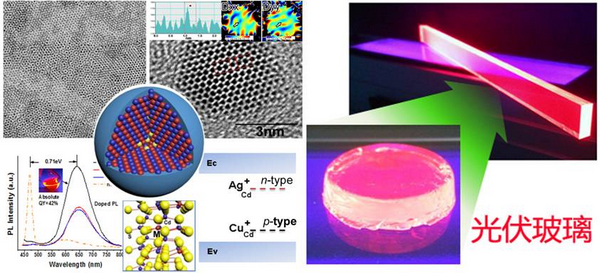 图2. II-VI半导体纳米晶的异价掺杂、掺杂发光、p/n导电类型调控及光伏玻璃