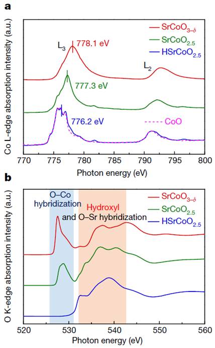 图3: 相变三相样品Co L 吸收边(a)和氧 K 吸收边(b)的软X射线吸收谱测量结果。