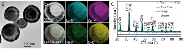 图1. 3S-LCN-0.5 HoMSs: a.TEM图像, b. TEM-Mapping图像, c. XRD图谱.