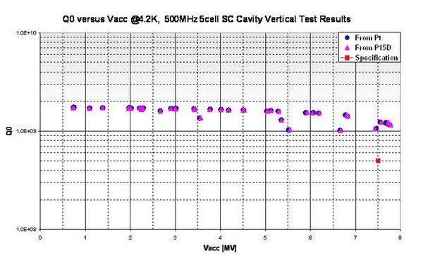 2012年12月17日,由中国科学院上海应用物理研究所上海市低温超导高频腔技术重点实验室自主研制、目前在国际上具有最大加速孔径的500MHz 5-cell超导高频腔,成功完成了液氦垂直测试,在4.2K温度下超导腔性能可达到Q0>1×109 @Vacc=7.5MV。在测试过程中,该超导腔工作状态稳定,真空性能良好,达到1.2E-9mbar,无明显的二次电子倍增。