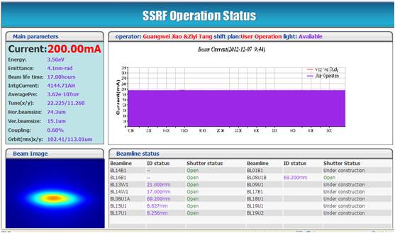 2012年12月6日,上海光源正式开始恒流模式用户运行(top-up operation),这是上海光源在性能提高方面的又一重要里程碑。到12月18日9:00,上海光源成功完成了首轮恒流模式用户运行,恒流运行时束流流强保持在200±1 mA,500个束团连续填充;注入间隔~10分钟,每次注入时间~10秒;束团电荷填充均匀性好于95%。在首轮288小时的恒流模式运行期间,上海光源的开机率达到99.5%,12天里储存环插入件两端的束流轨道稳定度为0.56µm(rms,水平方向)和0.25µm(rms,垂直方向);共有来自47家单位的206位用户在恒流运行模式下执行了86个实验课题,用户反映光源稳定,实验结果良好。