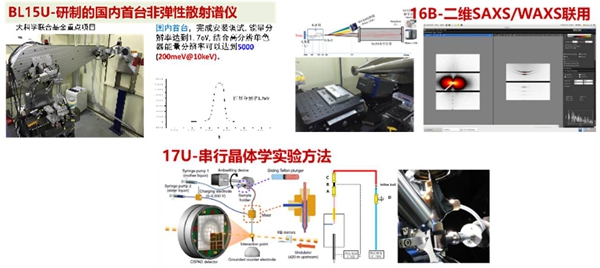 生物大分子晶体衍射方面,蛋白晶体学组解决了蛋白微晶自动对中的一系列关键技术,成功实现了微晶的自动筛选,将实验效率提高一倍以上,该项技术达到国际先进水平。前沿实验方法研究为BL17U线站蛋白结构解析效率多年来雄居世界同类线站第一,奠定了重要的技术基础。薄膜材料晶体空间位置和取向分布会直接影响材料特性,X射线衍射组解决了标准Huber衍射仪兼容面探测器二维衍射测量的难题,实验效率达到国际同类专用线站的先进水平,现已广泛应用于无机薄膜和有机光电材料等领域研究,相关用户成果发表在Nature Mater., Nature Photon., Adv. Mater.等国际一流期刊上。