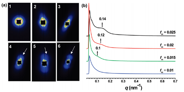 团队于2011年首次发现了氧化石墨烯的液晶行为,这一发现奠定了石墨烯宏观组装的基础原理[1]。氧化石墨烯液晶是胶体液晶,其有序结构的尺度最长可达100纳米级别,测量范围的选择不当往往会带来完全错误的结构信息。上海光源小角散射线站多年的支持下,同步辐射SAXS的测试结果表明氧化石墨烯液晶中的有序距离可达到80nm,这一结果从X射线光谱学上确认了氧化石墨液晶。更进一步,同步辐射SAXS结果作为主要表征手段,确认了氧化石墨烯的向列相、层状相以及新型的手性液晶相,为液晶相态的研究与新发现起到了火眼金睛的作用[2]。
