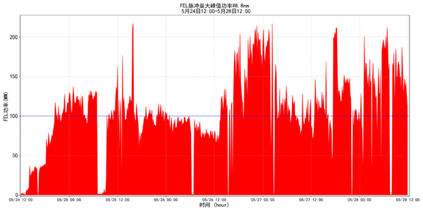 专家组听取了SXFEL试验装置两级级联HGHG调试情况报告和自测报告,讨论形成了工艺测试大纲,并进行了现场测试。实测结果表明,两级级联HGHG输出X射线自由电子激光的波长、脉冲长度和功率等指标均达到或优于设计指标,最大峰值功率为207兆瓦,最可几峰值功率为125兆瓦。测试期间,装置72小时正常运行,保持连续出光。
