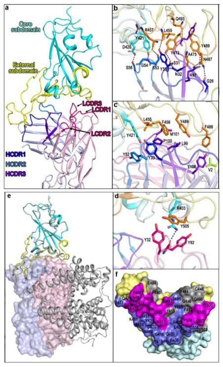 中国科学院微生物研究所严景华及其合作团队,在Nature上发表了题为“A human neutralizing antibody targets the receptor binding site of SARS-CoV-2”的研究成果,首次报道了在非人灵长类动物试验模型中,能够有效治疗和预防新型冠状病毒(SARS-CoV-2)感染的特异性、全人源单克隆抗体。研究团队利用上海光源BL17U1线站解析了抗体-新冠病毒S蛋白复合物的高分辨率晶体结构,阐明了该中和抗体抑制病毒侵入动物细胞、阻断病毒感染的结构生物学机制。作为由中国科学院自主研发的具有重大临床应用前景的抗体药物,该产品已申请发明专利并进入产业化快速发展通道。目前已经完成技术转化和治疗性抗体的生产工艺建设,产业化进展顺利,预期将在近期申请临床试验。一旦成功上市,将会为世界疫情防控工作做出贡献。