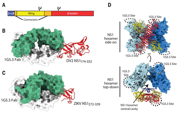 抗体1G5.3与DENV-2及ZIKV NS1的复合物晶体结构