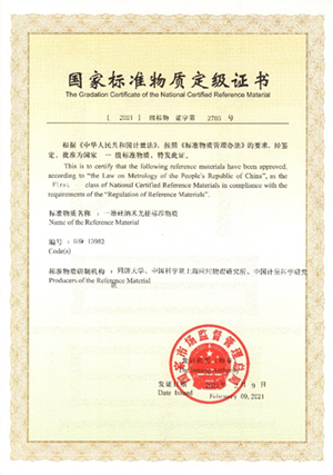 该标准物质的研制成功表明我国已能制备出与国际先进水平同步的纳米标准物质。该标准物质将主要应用于:1)扫描电子显微镜和扫描探针显微镜等计量器具的校准;2)纳米长度测量标准计量方法的研究与评价;3)二级标准物质的鉴定。