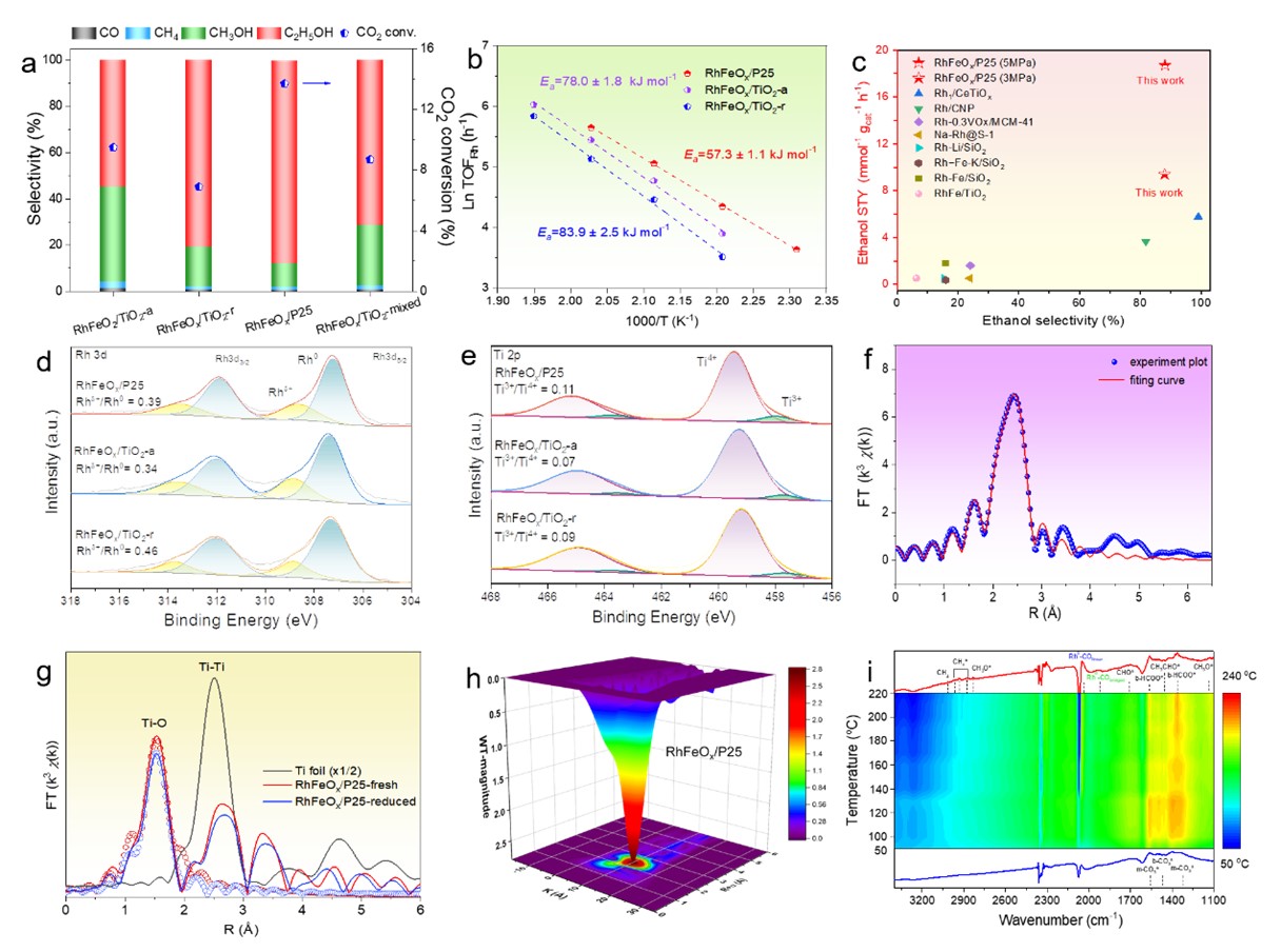 图1 RhFeOx/TiO2高效催化CO2加氢制乙醇反应性能、构效关系以及机理研究