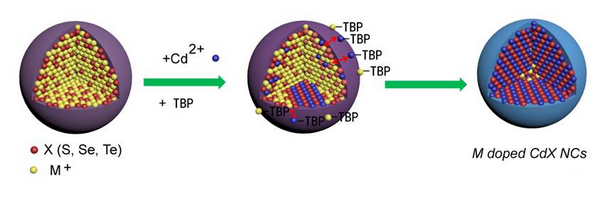 图1. 全新的离子交换法实现M离子在II-VI半导体纳米晶中的掺杂