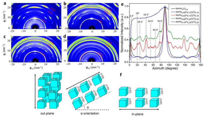 针对钙钛矿太阳电池毒性的问题,苏州大学廖良生课题组王照奎教授尝试采用引入铟(In)部分替代铅(Pb)的来制备钙钛矿太阳能电池,上海应用物理研究所高兴宇、杨迎国等研究人员结合上海光源衍射线站GIXRD实验,提出了掺铟钙钛矿太阳能电池薄膜的多重有序结晶取向和多重有序电荷传输通道理论(图1上图),并进一步通过电荷传输速率和器件性能实验得到证实(图1下图),从而很好的解释了掺铟钙钛矿型太阳能电池具备效率高(17.55%)和稳定性好的主要因素,也为开辟替代铅的钙钛矿太阳能电池研究奠定了一定的实验基础。该工作上海应物所与苏州大学为共同通信单位,相关结果已于近期发表在Advanced Materials(Zhaokui Wang, Meng Li, etal.DOI:10.1002/adma.201600626)上。