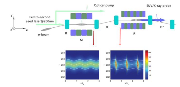 基于储存环产生真空深紫外及X射线波段超短辐射脉冲的原理示意图