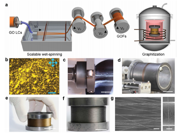 石墨烯是国家重点支持的战略前沿和新兴材料产业,其具有极为优异的光学、电学、力学特性。但高品质单层石墨烯粉体类原料一直以来无法量产,使得石墨烯诸多优异性能无法充分发挥出来,导致其产业化之路困难重重。国际国内对单层石墨烯原料能否量产也充满争议。在通往高性能多功能石墨烯宏观材料的道路上,浙江大学高超教授研究团队从科学基础研究出发,发现了氧化石墨烯液晶相[1],提出了“液晶湿法组装”方法,首次提出并实现了石墨烯纤维的制备,推进了石墨烯纤维的高性能化与多功能化。在这一过程中,上海光源的小角X射线散射线站起到了极为关键的作用。