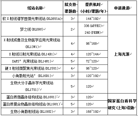 注:2020 年BL17B、BL01B线站不开放重点课题申请,如有需要请申请普通课题。