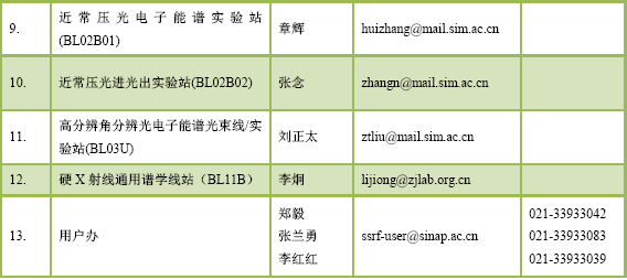 上海光源用户负责人及用户办联系方式