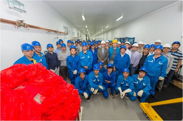 项目总体组组长,工程首席科学家赵振堂研究员致辞并宣布主体设备安装正式启动,他强调,上海应物所的团队经过多个工程的锤炼,培养出了过硬的能力和技术,要以更高标准把控工程质量,把SXFEL项目创建成精品工程。赵振堂表示,中国科学院“率先行动”计划对科技创新提出了新要求,作为张江综合性国家科学中心的重要大科学设施,SXFEL拉开了新一代光源的序幕,项目的早日建成将对软X射线自由电子激光用户装置等设施的建设和运行开放,加快向具有全球影响力的科技创新中心进军,具有重要推进作用。(大装置部 供稿)