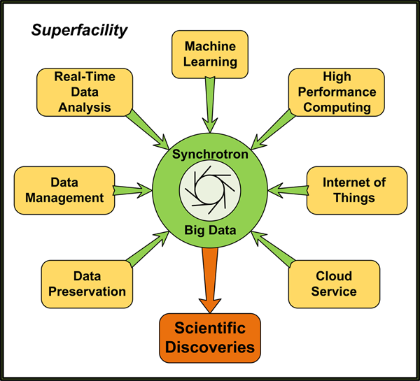 该综述提出为了应对这一挑战,需要一个桥连最前沿科学与最先进技术的高度协调的新方案。因此,该综述概述了大数据科学相关技术应用于同步辐射设施的所有最新研究成果,并概述了目前在用的并不多的旨在解决同步辐射大数据挑战的方案。该综述指出,这些研究成果和尝试性方案的有机结合是将同步辐射装置创造成为“超级设施(Superfalicity)”的基石,同步辐射超级设施是同步辐射大数据与人工智能、高性能超级计算、实时远程无人实验和机器人自动化完全集成的结果。Superfacility将加速国家大型科学设施(如上海光源和张江实验室)多学科科学的科学发现和技术进步,具有明显的社会影响。这也是张江实验室上海光源科学中心的目标,Alessandro Sepe研究员及其工作人员正在为中国第一个同步辐射超级设施做出贡献,旨在支持所有关键的国家科学需求。