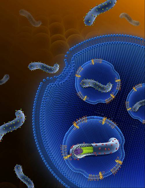 埃博拉病毒是一类囊膜病毒,其对宿主的入侵可以分成两个重要步骤,首先是病毒粘附到宿主细胞膜表面,然后是病毒通过细胞内吞进入细胞内部,形成内吞体,在内吞体内,病毒发生膜融合过程,释放自身遗传物质。