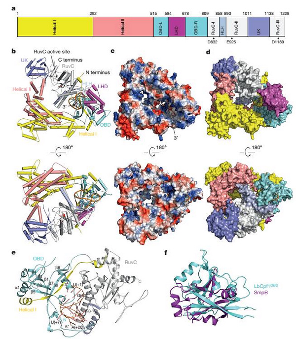 图:CRISPR-Cpf1结合crRNA的复合物晶体结构