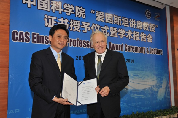 中国科学院 “爱因斯坦讲席教授”计划,目的是加大对战略科技专家和将帅人才的培养力度,加强我院科技人才同世界顶尖科学家的联系与交流,引进前瞻科学思想和开拓新兴学科领域,提升我院科技人才的创新能力。此计划每年将邀请20-30名活跃在科学前沿的世界顶尖科学家,来中科院进行1~2周的学术访问。