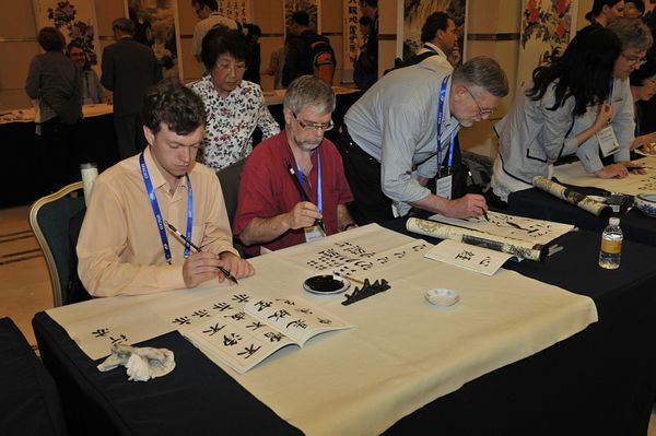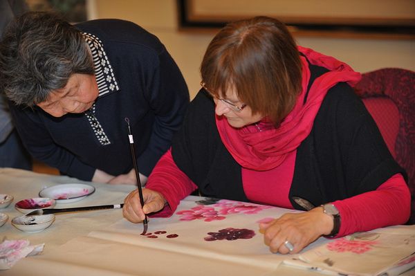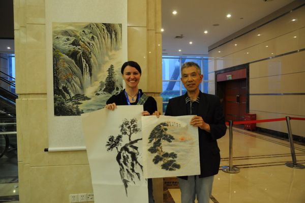 在活动现场,来自世界各地的与会来宾表现出对书画艺术的极高热情,梅林书画室老师们耐心教导,热心传授;外国友人认真临摹、大胆创新,活动瞬间拉近了外国友人和中国的距离。现场气氛融洽,来宾兴致高昂,预计一小时的体验活动时间一再延长,活动结束时梅林书画室的老师们慷慨地将自己的部分作品送给他们留作纪念。本次活动共计近50人次参与其中,反响热烈,受到了中外友人的一致好评。