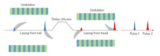 多色脉冲是近年来自由电子激光领域迅速兴起的一项前沿技术,能够大大拓展自由电子激光应用范围和提高X射线光谱学的时间分辨率。通过控制自由电子激光的发光过程,使得同一团电子束在波荡器中可以连续发射出多个具有不同光子能量的超短脉冲,并使每个脉冲的中心波长和脉冲之间延时都可以连续、独立地调谐。目前,国际上的X射线自由电子激光装置都在着力开展多色脉冲的相关研究,并于近几年取得了一系列重要进展,有望为X射线时间分辨光谱学实验研究带来突破。(自由电子激光部供稿)