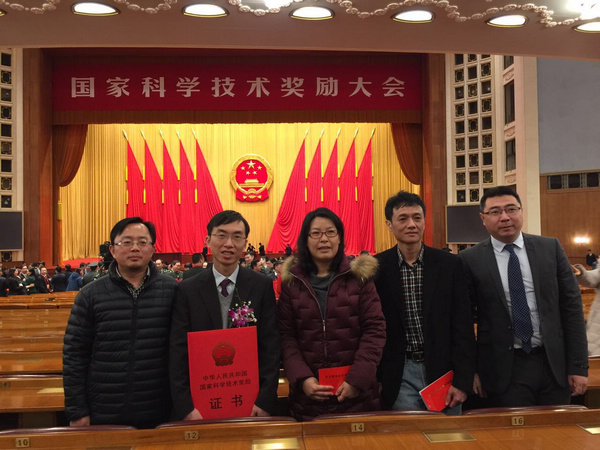 2017年1月9日上午,2016年度国家科学技术奖励大会在人民大会堂隆重举行。党和国家领导人习近平、李克强、刘云山、张高丽等出席大会并向获奖代表颁奖。本年度国家科学技术奖共评选出2名最高奖获奖人、279个项目(其中自然科学奖42项)、5名外籍专家和1个国际组织。由上海应物所马余刚研究员牵头完成的“重离子碰撞中的反物质探测和夸克物质的强子谱学与集体性质研究”和樊春海研究员牵头完成的 “生物分子界面作用过程的机制、调控及生物分析应用研究”两大项目同时荣获国家自然科学奖二等奖。马余刚研究员和樊春海研究员作为获奖项目代表上台领奖。