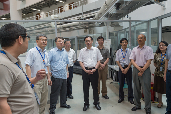 2015年7月28日下午,国家发改委副主任林念修一行,在上海市副市长艾宝俊、上海科技大学校长江绵恒、中科院副院长王恩哥的陪同下,来到中科院上海应物所张江园区,视察上海光源。