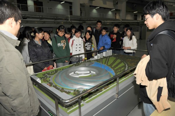 2009年11月3日下午,复旦大学核科学系、物理系、化学系共180名学生来到中科院上海应用物理所张江园区。上海应用物理所李燕副所长致欢迎辞,介绍了上海应用物理所的基本情况及发展前景,欢迎复旦学子有机会到我所工作或读研。随后,上海光源工程总经理徐洪杰研究员为学生们作了题为“上海光源与核技术”的报告。介绍了“核能源”、“辐射加工技术”、“放射性药物”、“离子束分析”及“同步辐射”等核技术相关的专业知识,并详细介绍了上海光源从立项到建成所经历的各个阶段工作。报告结束后,学生们分批现场参观了上海光源国家重大科学工程。