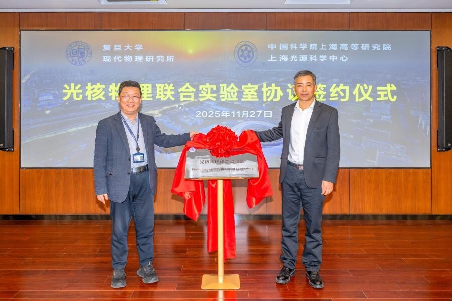 2025年11月27日,中国科学院上海高等研究院(以下简称“上海高研院”)上海光源科学中心与复旦大学现代物理研究所举行“光核物理联合实验室”签约仪式。联合实验室将聚焦光核物理前沿领域,结合复旦大学现代物理研究所在核物理学科方向的优势与上海光源科学中心在大科学装置方面的平台优势,强强联合,推动我国光核物理基础研究与技术应用方面的创新发展。上海光源科学中心沈文庆院士、赵振堂院士,上海高研院副院长邰仁忠、复旦大学副校长马余刚院士、复旦大学现代物理研究所所长方德清等双方单位代表出席了签约仪式。