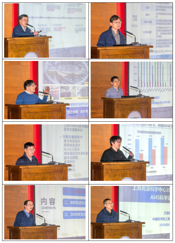 工作会议上,光源中心各分管主任围绕设施运行开放、项目建设、关键核心技术攻关和科学研究四个方面,作了专题报告。报告内容涵盖了上海光源运行及其后续线站工程、上海软X射线自由电子激光装置运行开放和前沿物理研究、设施的数字化智能化改造项目、材料综合研究设施微观表征子系统、硬X射线自由电子激光装置、FV2及粒子加速器应用项目、储存环全相干光源关键技术验证项目等项目进展,以及储存环、直线加速器、光束线等关键技术攻关进展,上海光源用户开放和重大任务、In-house研究和实验方法发展、AI4S建设等工作进展情况和2026年任务目标与工作计划。