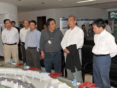 曾培炎同志视察上海光源2009年10月11日,前中共中央政治局委员、国务院副总理曾培炎,在上海市委常委、常务副市长杨雄和副市长沈晓明陪同下,来到中科院上海应用物理所张江园区,视察上海光源。在上海光源主体模型前,曾培炎听取了上海光源工程总经理徐洪杰关于上海光源建设和开放情况的汇报,并实地察看了储存环和光束线实验站等装置。2009-10-15