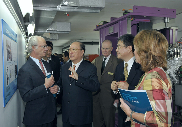 瑞典皇家技术考察团访问上海光源2010年11月12日上午,由瑞典国王卡尔十六世?古斯塔夫、瑞典驻中国和蒙古大使罗睿德、瑞典皇家工程科学院主席莉娜?托雷尔和院长尼尔森等组成的瑞典皇家技术考察团一行约40人,在中国工程院主席团名誉主席徐匡迪陪同下,来到中科院上海应用物理所张江园区,访问上海同步辐射光源。 2010年11月12日上午,由瑞典国王卡尔十六世•古斯塔夫、瑞典驻中国和蒙古大使罗睿德、瑞典皇家工程科学院主席莉娜•托雷尔和院长尼尔森等组成的瑞典皇家技术考察团一行约40人,在中国工程院主席团名誉主席徐匡迪陪同下,来到中科院上海应用物理所张江园区,访问上海同步辐射光源。中国科学院副院长江绵恒对考察团的来访...2010-11-16