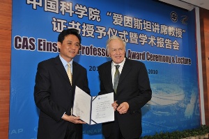 诺贝尔奖获得者Anthony. J. Leggett教授成为我所首位“中国科学院爱因斯坦讲席教授”2010年3月2日至3日,2003年诺贝尔物理学奖获得者、美国伊利诺伊大学教授Anthony J. Leggett作为中国科学院“爱因斯坦讲席教授”,在上海应用物理研究所进行为期二天的学术访问,成为我所首位“爱因斯坦讲席教授”,也是首位正式访问我所的诺贝尔奖获得者。 3月2日上午,我所在张江园区举行“爱因斯坦讲席教授”证书授予...2010-03-24