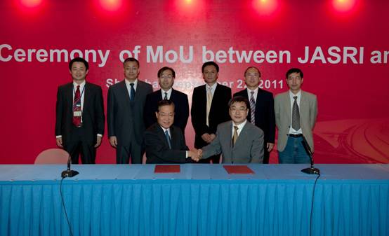 上海应用物理研究所与日本同步辐射研究所举行合作协议签字仪式2011年9月22日下午,上海应用物理研究所和日本同步辐射研究所(JASRI)在上海光源举行了全面合作协议的签字仪式。出席仪式的日方代表有:JASRI理事长白川哲久先生和研究调整部部长铃木昌世博士,中方代表包括:上海应用物理研究所所长赵振堂研究员和副所长胡钧研究员以及其他科研人员。胡钧副所长主持了签字仪式。 赵振...2011-09-27