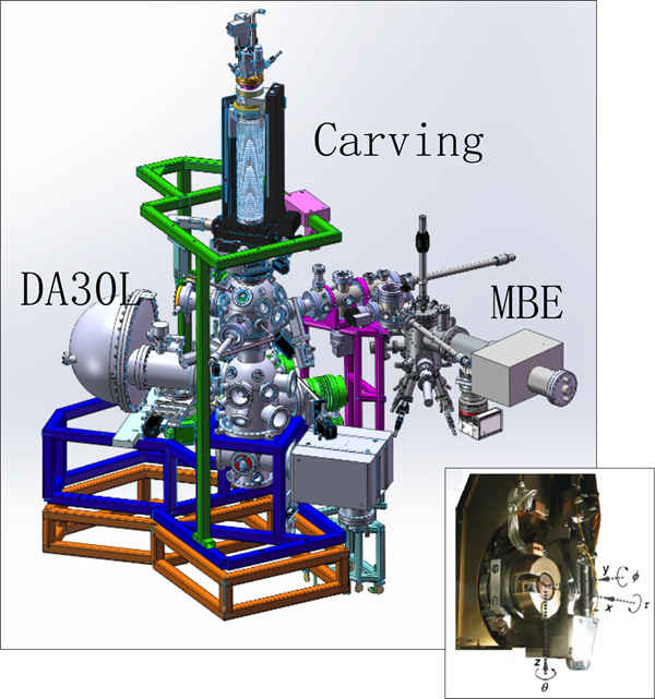 ARPES实验站配备了先进的Scienta DA30L 电子能量分析器和六轴液氦开循环样品操纵台Carving。其中DA30L具备最新的Deflection模式,能够进行快速高效的费米面测绘,尤其适用于小尺寸样品。Carving样品架具有3个平移自由度和3个转动自由度,提供高精度、高稳定性的样品姿态操控,方便地获取动量空间内大范围内任意位置的电子结构信息。Carving配有Labview编写的控制软件和良好的位置与安全连锁程序,为实验测量带来便利性。