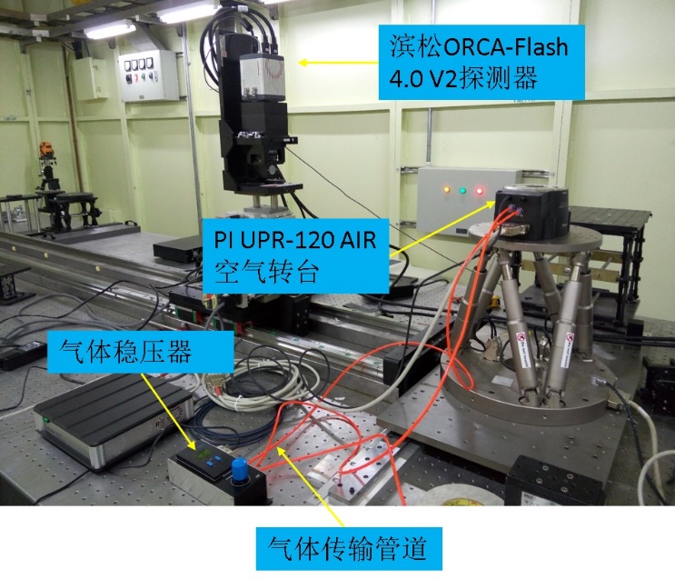 通过合理搭配样品台和探测器,实验站可以开展动态成像、显微CT和动态CT实验方法。采用滨松ORCA-Flash 4.0 V2探测器,动态成像的最高时间分辨率可达1ms,像素大小为6.5微米,可用于实时成像。通过采用高精度多维样品台和高分辨率探测器(滨松ORCA-Flash 4.0 V2探测器+光学显微耦合系统),可实现1微米空间分辨率的显微CT实验方法,可获得样品的高分辨率三维结构信息。结合滨松ORCA-Flash 4.0探测器和PI UPR-120 AIR气浮转台,可实现动态显微CT实验方法,其采集一套完整的CT数据只需0.5秒,像素大小为6.5微米,可用于样品三维结构动态演化观察。下图为2Hz动态显微CT实验方法硬件系统。