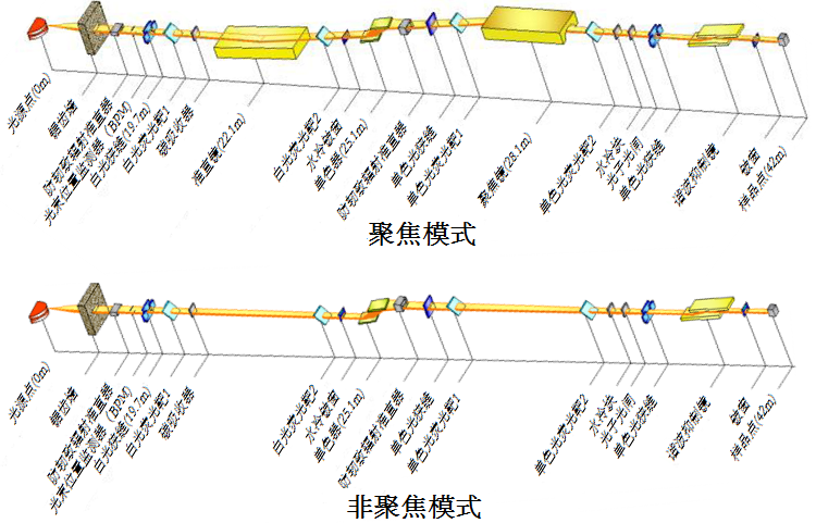 BL14W1线站采用38极Wiggler插入件,最大磁场强度为1.2T,周期长度为80mm。线站光学系统主要包括准直镜、液氮冷却双晶单色器、聚焦镜和谐波抑制镜。其中单色器包括两套Si晶体:Si(111)和Si(311),分别在聚焦和非聚焦两种模式下运行,其中聚焦模式下,能量可覆盖范围为4.5-20KeV;非聚焦模式下,能量可覆盖范围为8-50KeV。
