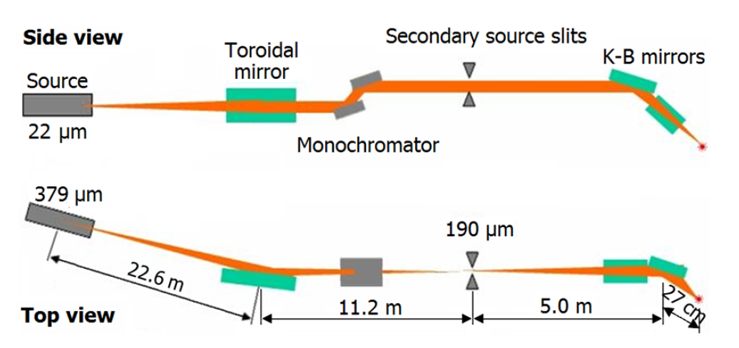 BL15U1线站采用真空混合波荡器作为辐射光源,周期数为80,周期长度为2.5 cm,可产生1-11次谐波,能量范围覆盖5-20 keV,磁隙范围7.1-30 mm。线站光学系统主要包括准直镜、液氮冷却双晶单色器、聚焦镜,其中单色器晶体为Si(111),可在聚焦和非聚焦两种模式下运行,聚焦模式下,光斑大小为2×2 μm2;非聚焦模式下,光斑大小为20-300 μm。